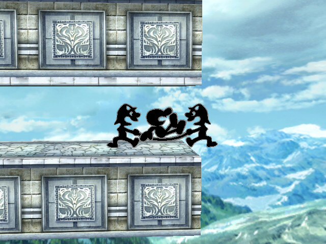 コンナ感じで作って、ミスターゲーム&ウォッチで↑Bを連続で使うとめり込むのです。